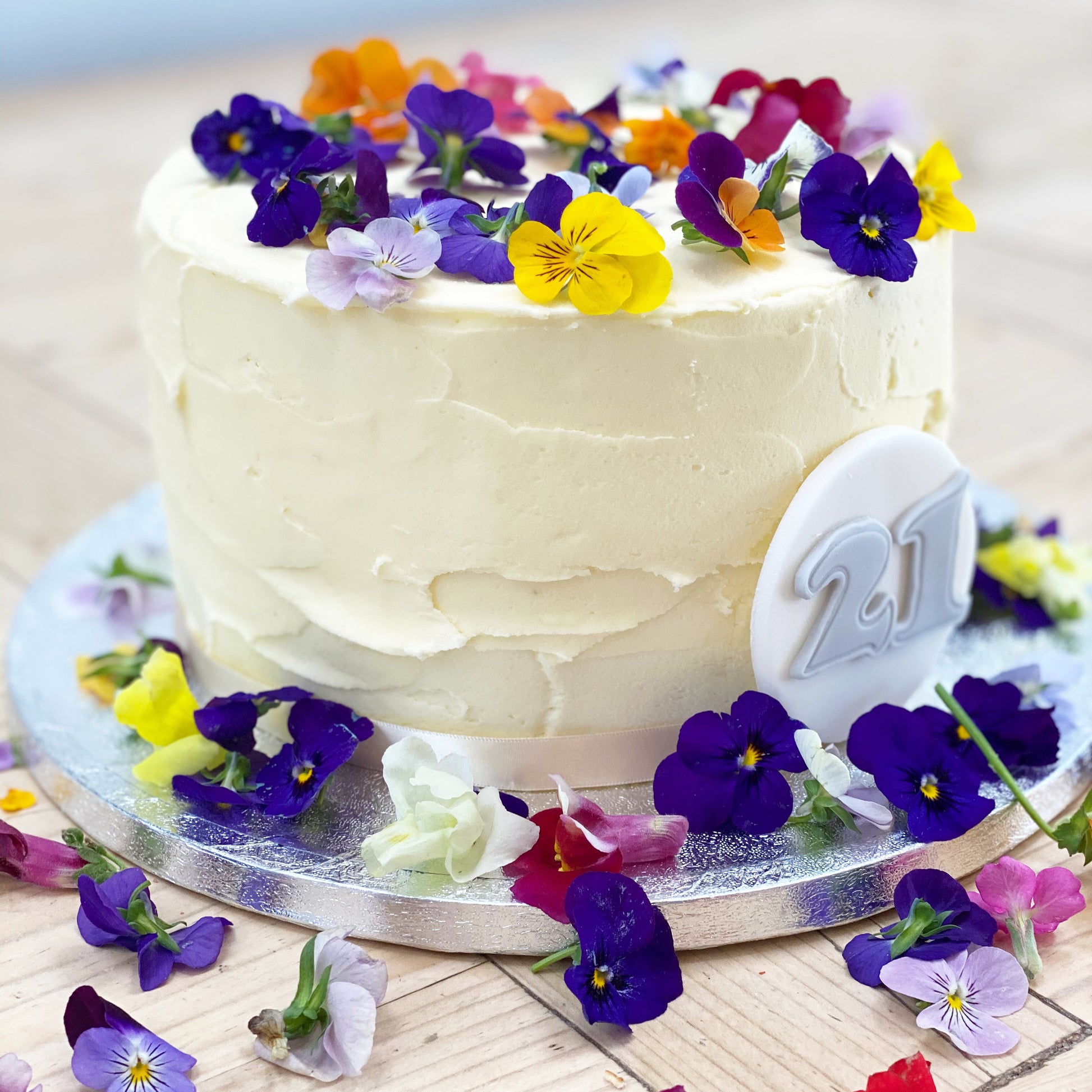 Buttercream Cake with Fresh Edible Flowers