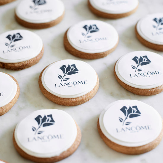 Serve your logo in style on our hand crafted cookies. Your logo is printed in edible ink onto the cookie icing.
